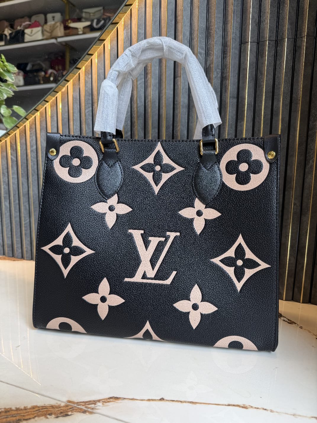 This On The Go Tote Bag is a stylish and sophisticated accessory. Crafted from high-quality leather, this bag features the iconic Monogram pattern embossed in a contrasting color. The spacious interior and comfortable double handles make it perfect for everyday use.